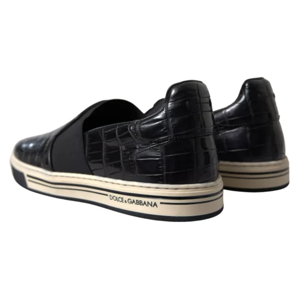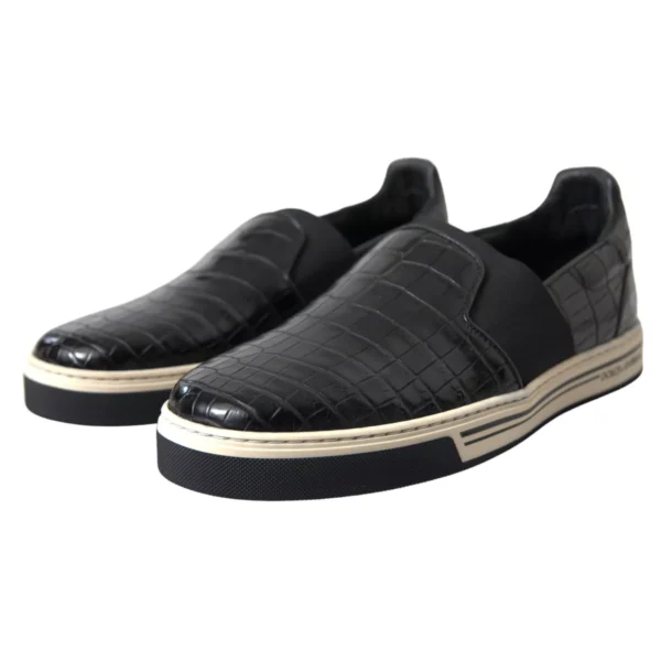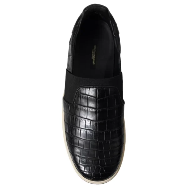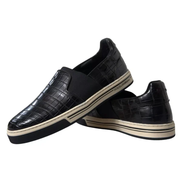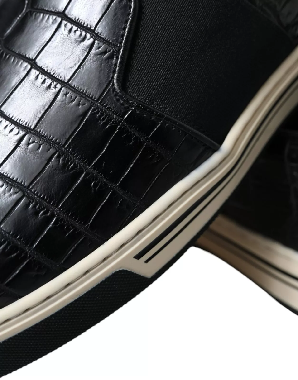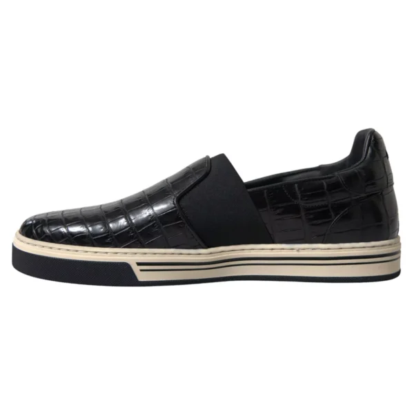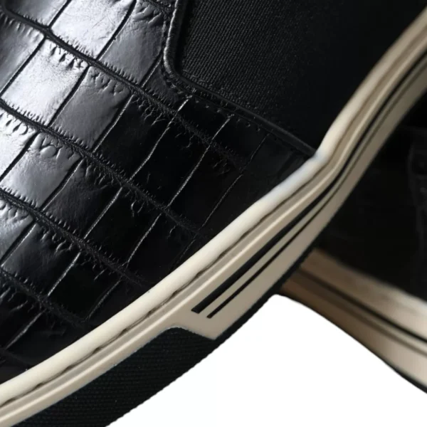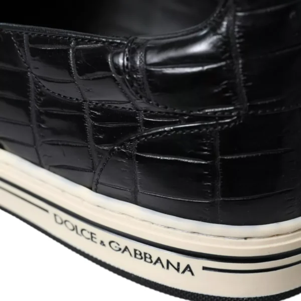 Hàng mới tuyệt đẹp , giày thể thao da cá sấu Dolce & Gabbana chính hãng 100% màu đen. Giày có mũi tròn, phần trên có dây buộc và chi tiết sọc ở đế giữa.